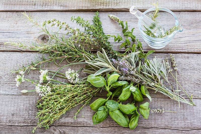 Assorted herbs.